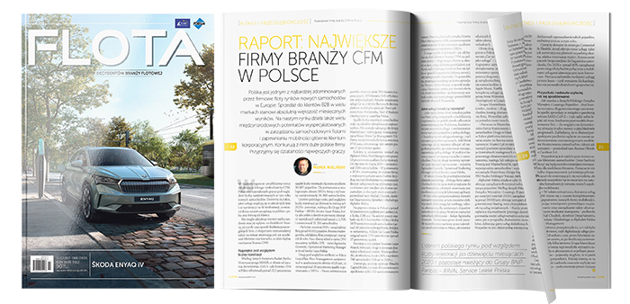 Miesięcznik „Flota” to najstarsze branżowe czasopismo skierowane do osób zarządzających flotami aut służbowych w firmach. Z każdym wydaniem edukujemy i integrujemy fleet managerów, testujemy i wskazujemy najlepsze rozwiązania branży flotowej, przedstawiamy relacje ze światowych premier i opisy najnowszych modeli. Miesięcznik redagowany jest przez uznanych ekspertów i praktyków rynku flotowego, którzy podejmują tematy dotyczące finansowania floty, rynku samochodowego i zmian w zakresie użytkowania firmowych samochodów osobowych. Przekazujemy Państwu kompleksowe, merytoryczne i nieszablonowe analizy zagadnień związanych z firmowym car parkiem. Miesięcznik „Flota” podzielony został na stałe działy: Strefa Wydarzeń i Strefa Rynkowa, Strefa Wywiadów, Strefa Fleet Managera, Strefa Paliwa i Serwis, Strefa Technologii i Strefa Auto Firmowe. Lektura niniejszego czasopisma umożliwi Państwu sprawniejsze zarządzanie flotą, dobór odpowiedniej formy finansowania floty, poznanie nowych modeli wprowadzanych na rynek samochodowy i optymalizowanie kosztów ubezpieczenia pojazdów.
